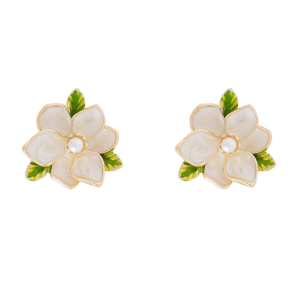 ต่างหูแบบติดหูสไตล์ฝรั่งเศส ดีไซน์ดอกพุดประดับมุกเทียม วัสดุอัลลอยด์ ชุบทอง 18K สวยหรู สไตล์ป่าไม้ เหมาะสำหรับผู้หญิง เป็นของขวัญ