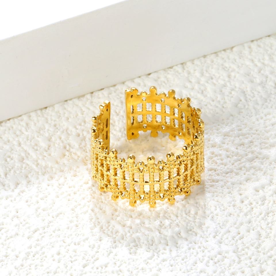 แหวนสแตนเลสชุบทอง 18k แบบฝรั่งเศส ทันสมัย ขายส่ง ไม่ลอก ไม่ดำ แหวนวงใหญ่แบบซ้อนได้ แหวนเปิดวงกลวงสำหรับผู้หญิง