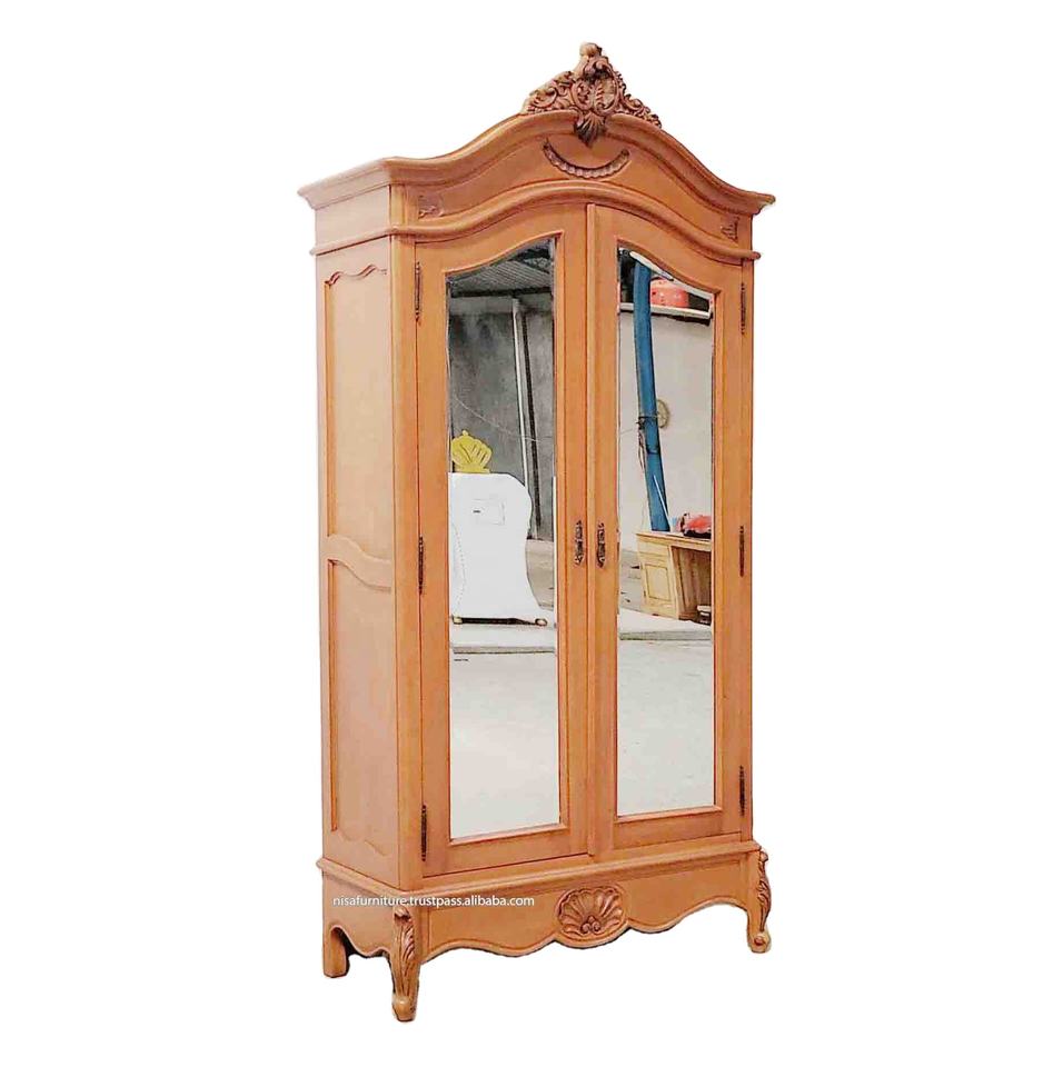 ตู้เสื้อผ้าห้องนอนสไตล์ฝรั่งเศส, กระจกวอลนัทสองประตูความจุขนาดใหญ่ทนทานแขวนได้ง่ายบ้านโรงแรม