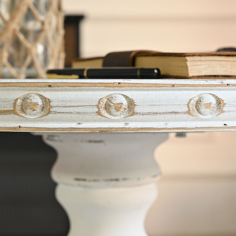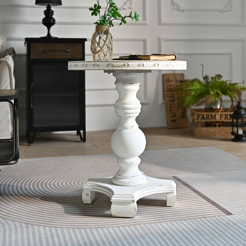เฟอร์นิเจอร์ห้องนั่งเล่นสไตล์ฝรั่งเศส โต๊ะกาแฟไม้เนื้อแข็งทรงกลมสีขาวสไตล์เรียบง่าย ทนทาน ประกอบง่าย