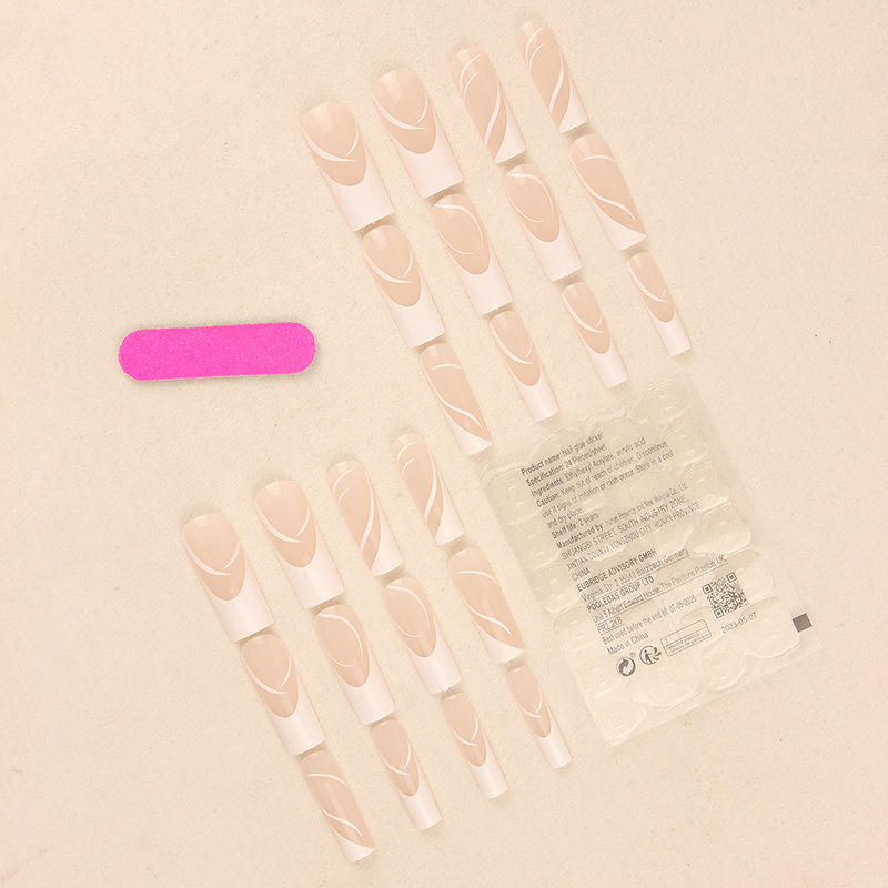 สติกเกอร์ติดเล็บข้ามพรมแดน24ชิ้นลายทางสีขาวยาวแบบเรียบง่ายติดปลายเล็บสไตล์ฝรั่งเศส