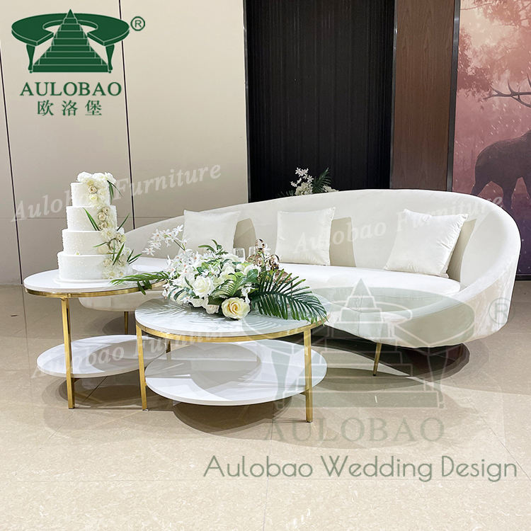 โซฟางานแต่งงานทำจากสแตนเลสสีขาวสีทองสไตล์ฝรั่งเศสสำหรับเจ้าสาวและเจ้าบ่าวให้เช่า