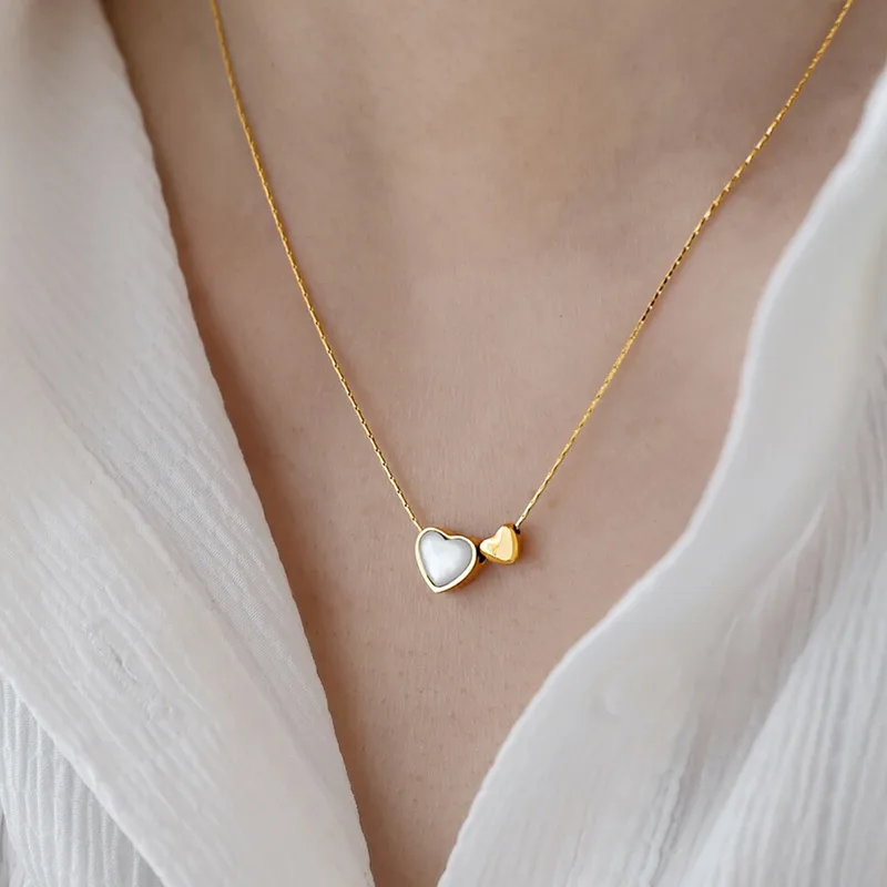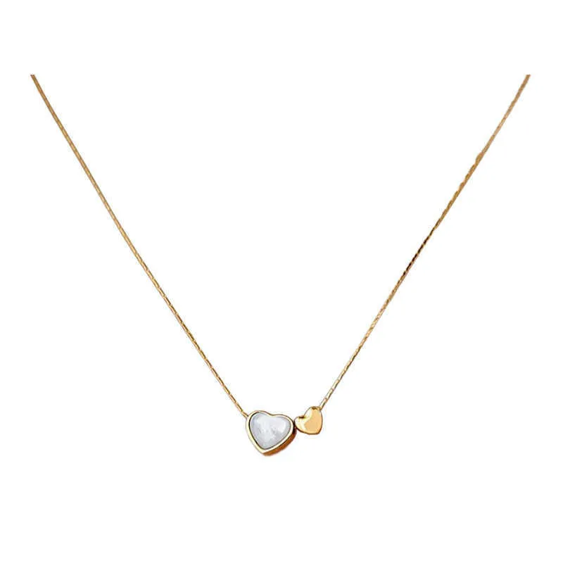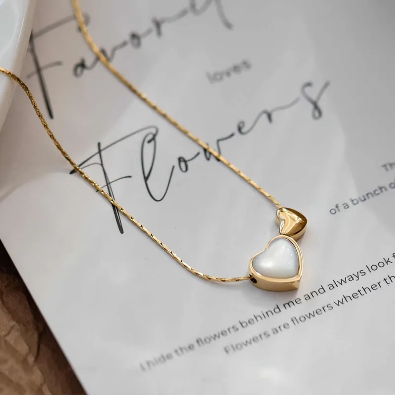 สร้อยคอรูปหัวใจคู่สีขาวสไตล์ฝรั่งเศสสำหรับผู้หญิง สร้อยคอหัวใจซ้อนกันแบบเรียบง่าย สร้อยคอประดับกระดูกไหปลาร้า โรแมนติก