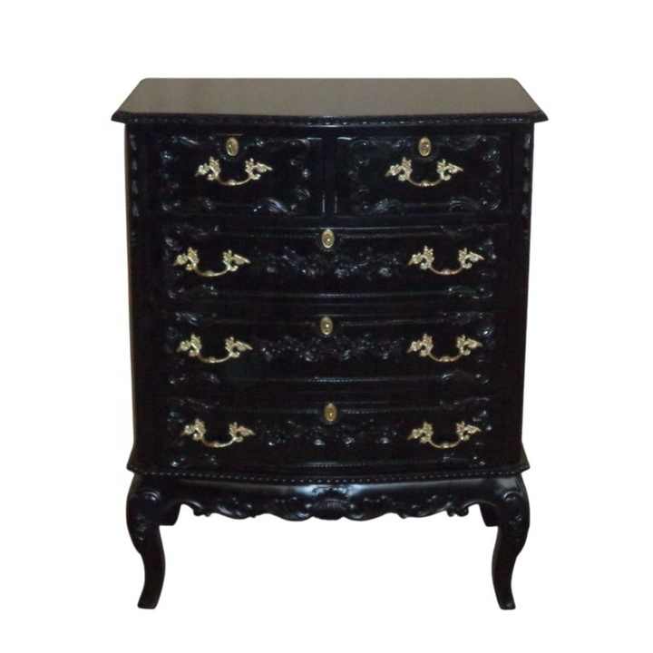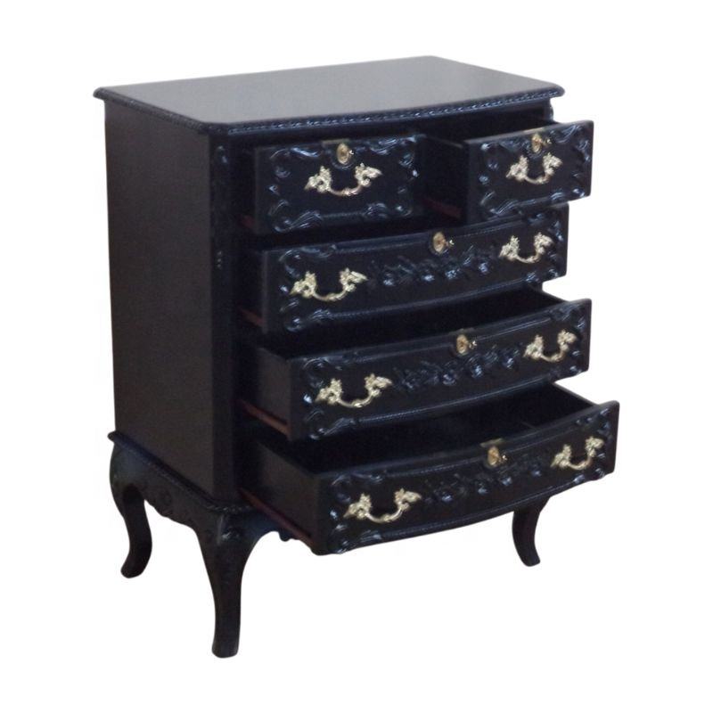 ลิ้นชักไม้สไตล์ฝรั่งเศสลิ้นชักโบราณทาสีดำออกแบบมาสำหรับชุดเฟอร์นิเจอร์ห้องนอนสไตล์ยุโรป