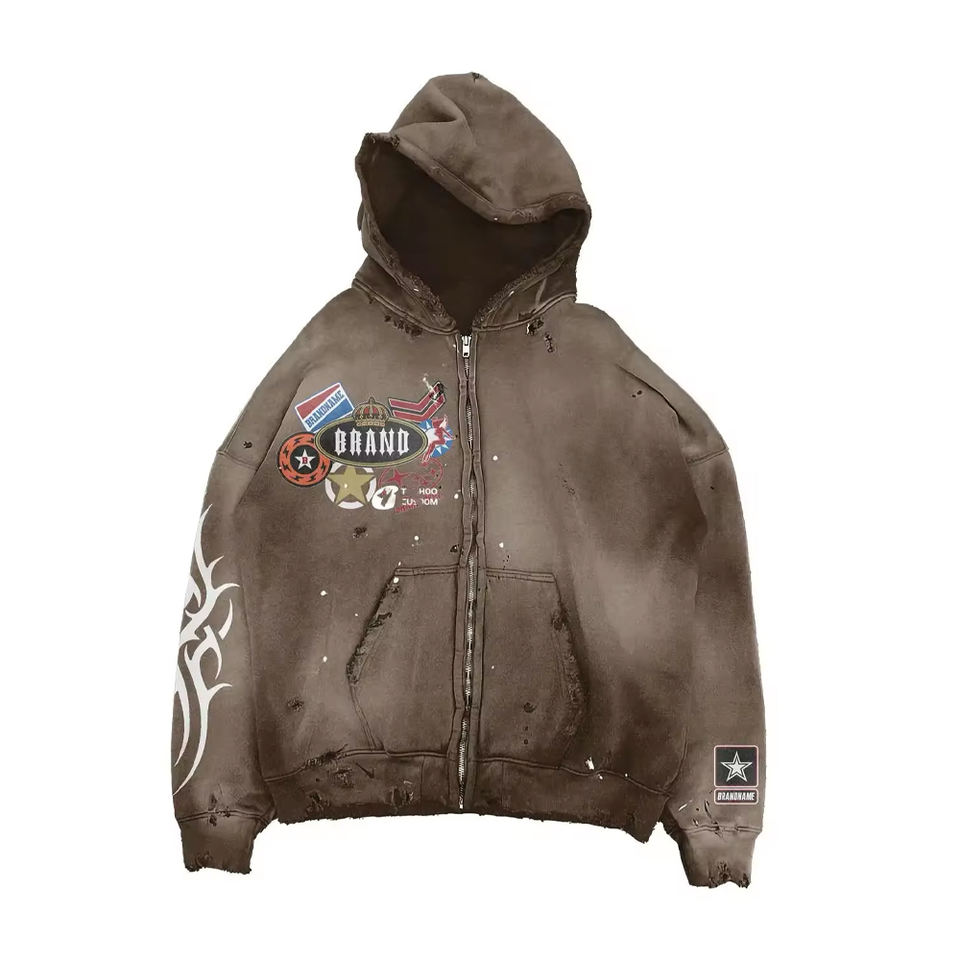 French Terry Customize Distressed Acid Wash Hoodies Washed Baggy Fashion Hoodies Men's Clothing Casual Wear