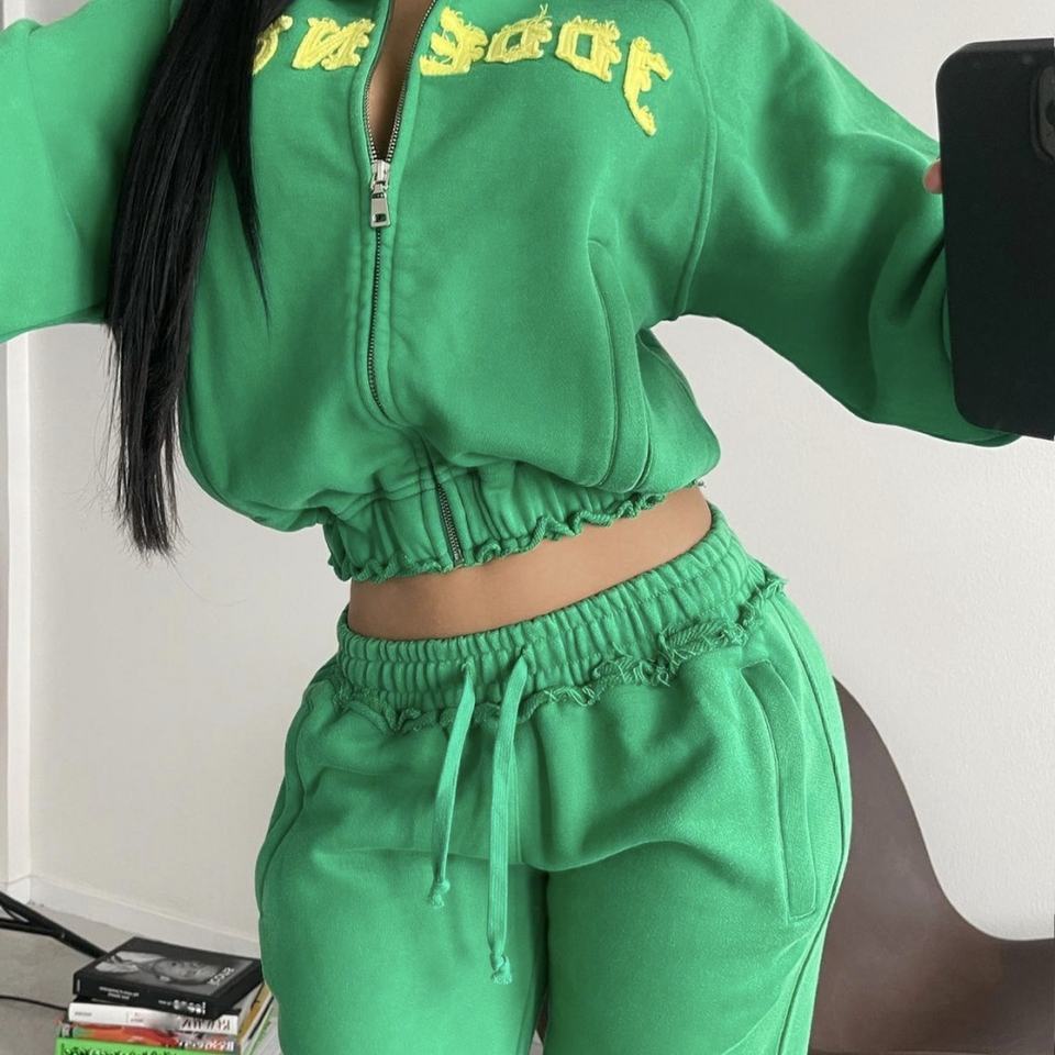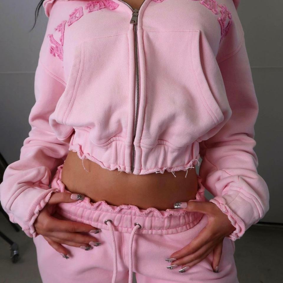 ผู้ผลิตชุดวอร์มแบบมีซิปทรงโอเวอร์ไซส์ผ้าเฟรนช์เทอร์รี่ ลุคทำสีซีดแบบแอซิดวอช แต่งแพทช์ปักลาย ชุดฮู้ดดี้ครอป