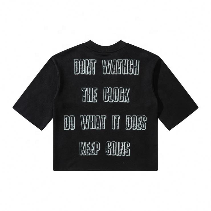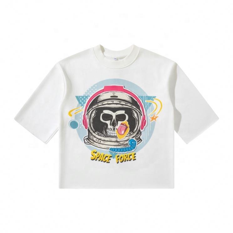 เสื้อยืดโอเวอร์ไซส์ผ้าคอตตอนผ้าคอตตอนพิมพ์ลายเทอร์รี่เสื้อครอปแบบเปิดไหล่มีลายพิมพ์ดิจิตอลสำหรับ100%