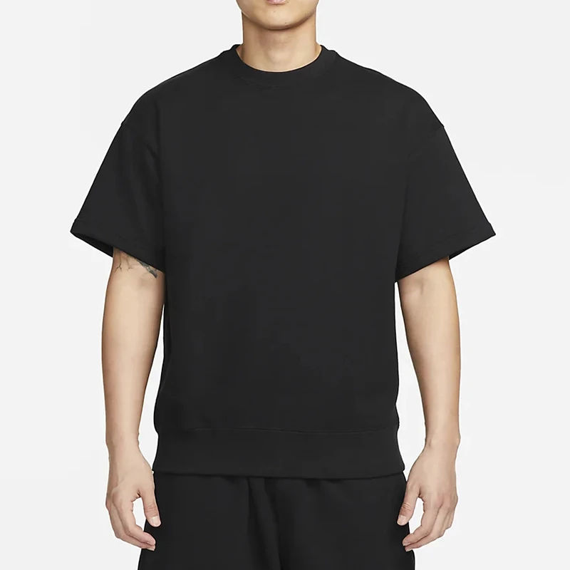 เสื้อยืดเฟรนช์เทอร์รี่ผู้ชาย ทรงหลวม ไหล่ตก คอกลม ปรับแต่งได้ ปลายเสื้อแบบยืดหยุ่น ใส่โลโก้ของคุณเองได้ เสื้อยืดริงเกอร์