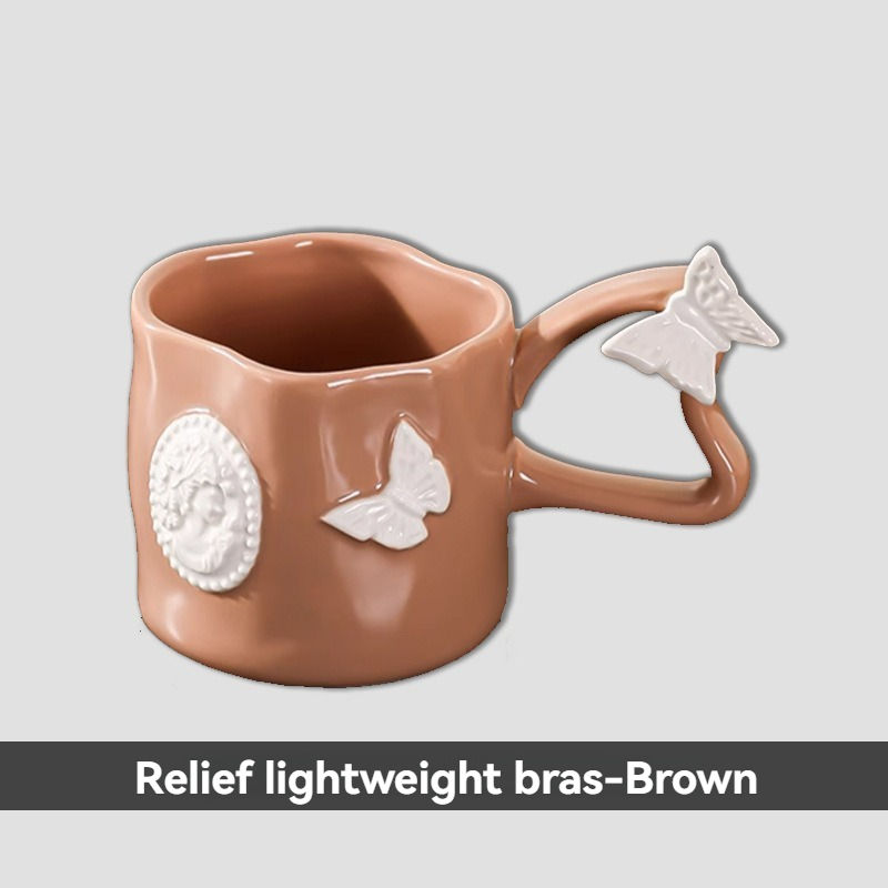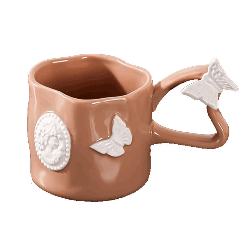 แก้วกาแฟเซรามิกทรงหนาแบบฝรั่งเศส พร้อมด้ามจับที่ให้ความรู้สึกหรูหรา แก้วน้ำสำหรับใช้ในบ้าน
