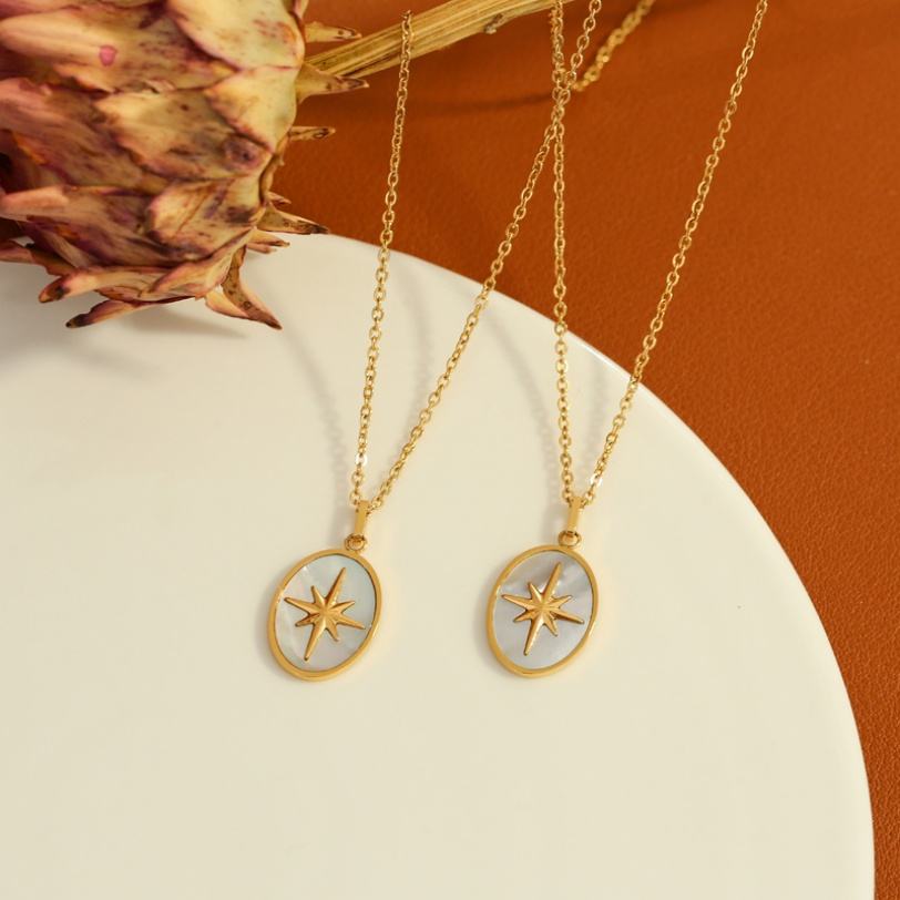 สร้อยคอเปลือกหอยสีขาวทรงแปดเหลี่ยมสไตล์วินเทจฝรั่งเศส สร้อยคออเนกประสงค์สำหรับผู้หญิง ทำจากสแตนเลสสีทอง เหมาะเป็นของขวัญ