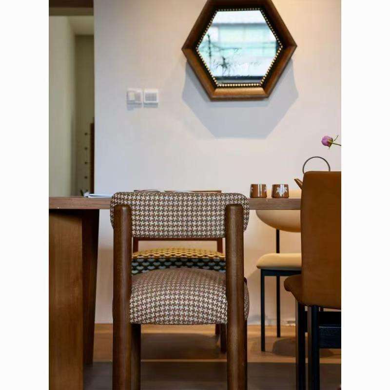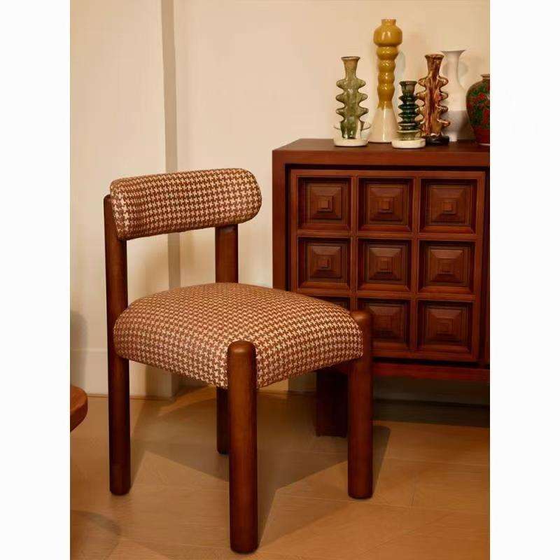 เก้าอี้ทานข้าวหุ้มเบาะสไตล์วินเทจฝรั่งเศส สีแดง ดีไซน์ย้อนยุค สำหรับห้องรับประทานอาหาร