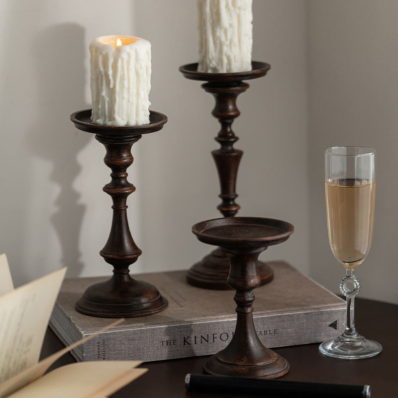 เชิงเทียนทรงสูงไม้วอลนัทฝรั่งเศส ดีไซน์หรูหรา ทำจากไม้เนื้อแข็ง เป็นมิตรกับสิ่งแวดล้อม ขัดเงา สไตล์เรโทร สำหรับตกแต่งบ้านในช่วงรอมฎอน