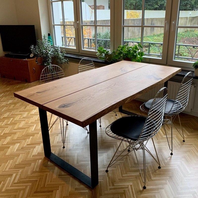 โต๊ะอาหารไม้โอ๊คขาวฝรั่งเศสแบบแผ่นเดียว สไตล์นอร์ดิกและวาบิซาบิ สำหรับ 4 ที่นั่ง รูปทรงสี่เหลี่ยมผืนผ้า เฟอร์นิเจอร์ห้องรับประทานอาหาร