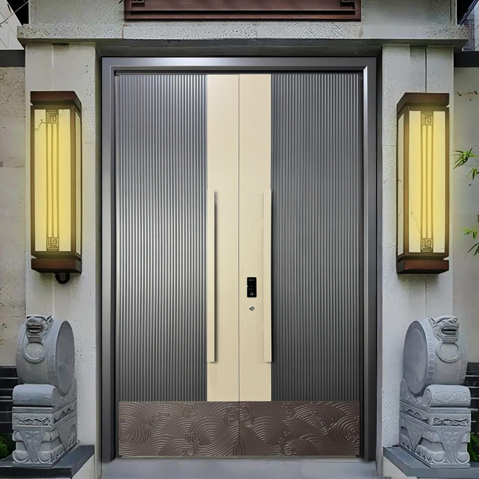 ประตูทางเข้าแบบทันสมัยสไตล์ฝรั่งเศสประตูวิลล่าสร้างขึ้นเองประตูกระจกฉนวนกันเสียงสแตนเลสประตูกันขโมย