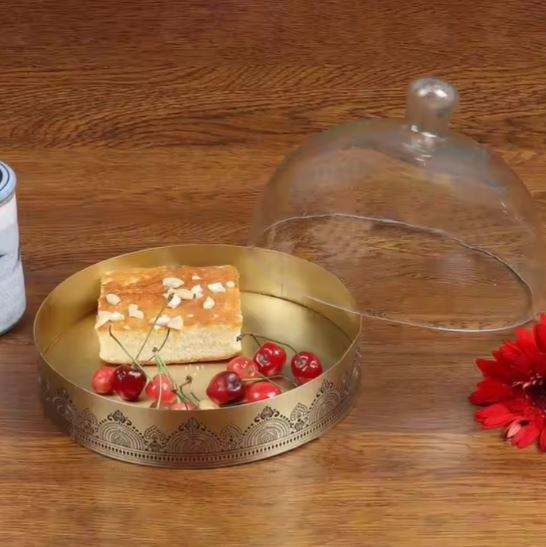 ถาดโลหะสำหรับงานฝีมือแนววินเทจอุตสาหกรรมถาดโลหะโดมแก้ว
