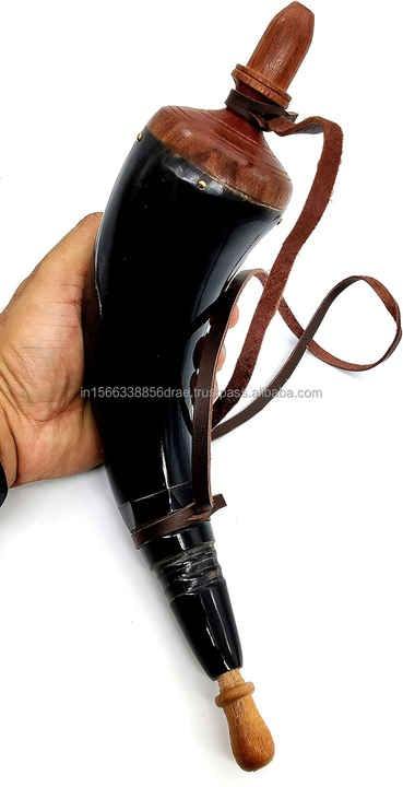 สินค้ามาใหม่แตรผงควายธรรมชาติพร้อมปลั๊กไม้พร้อมสายพานสำหรับปืนสีดำผงอาเกต