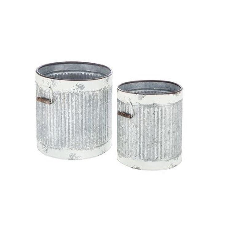 กระถางปลูกต้นไม้แบบวินเทจชุบสังกะสี ชุดสามใบ ทำจากเหล็ก ขนาด รูปทรง สี สามารถปรับแต่งได้ ใช้สำหรับงานสวน