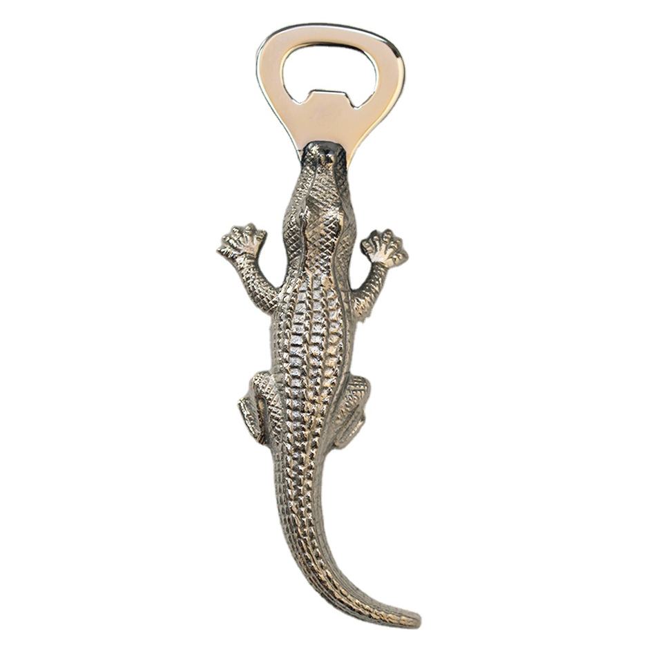 ที่เปิดขวดโลหะรูปจระเข้แบบขายส่งรุ่นใหม่ล่าสุด ผิวเงาสีเงิน ที่เปิดขวดแบบกำหนดเอง ที่เปิดขวดเบียร์อะลูมิเนียม