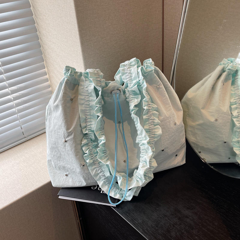 กระเป๋าโท้ทผ้าแคนวาสสไตล์โบฮีเมียนสำหรับผู้หญิง สีพื้นเรียบง่าย เหมาะสำหรับฤดูร้อน มีช่องใส่โทรศัพท์ ทรงสี่เหลี่ยมแนวนอน