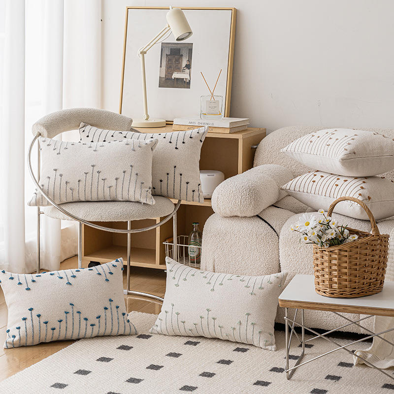 หมอนอิงผ้าฝ้ายลายพืชทรงสี่เหลี่ยม สำหรับตกแต่งห้องนั่งเล่นและห้องนอน ชุดของตกแต่งบ้าน