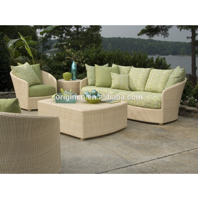 ชุดโซฟาหวายสังเคราะห์ HDPE สีเขียวเบจอ่อน สไตล์เฟรชลุค สำหรับสวน