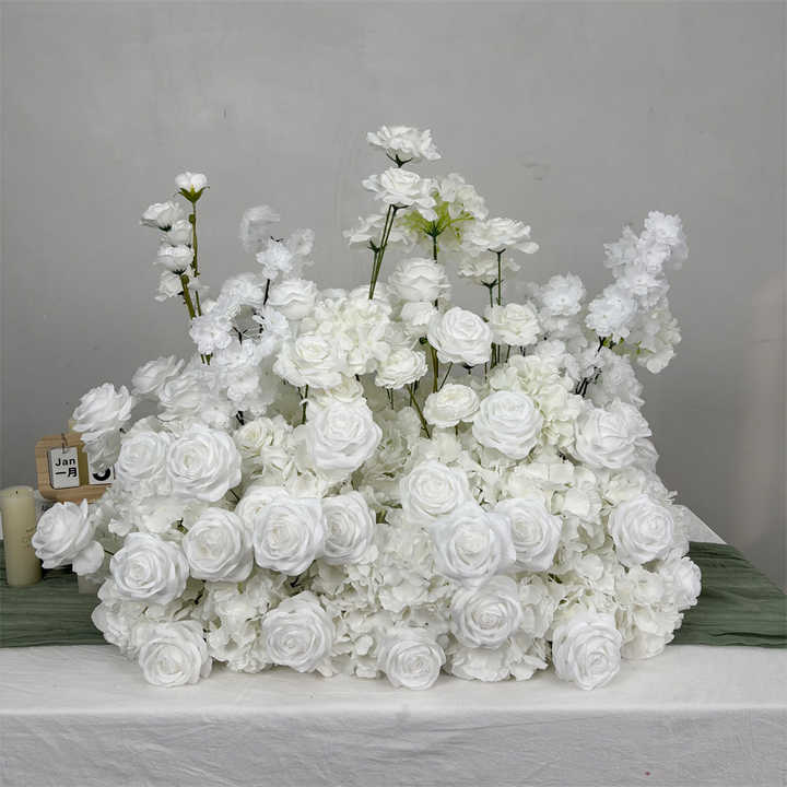 ดอกไม้ประดับทางเดินงานแต่งงาน สดชื่น เป็นธรรมชาติ ดอกกุหลาบผ้าไหมสีขาว ติดทนนาน ทำด้วยมือ ตกแต่งทางเข้า วันแม่ วันคริสต์มาส