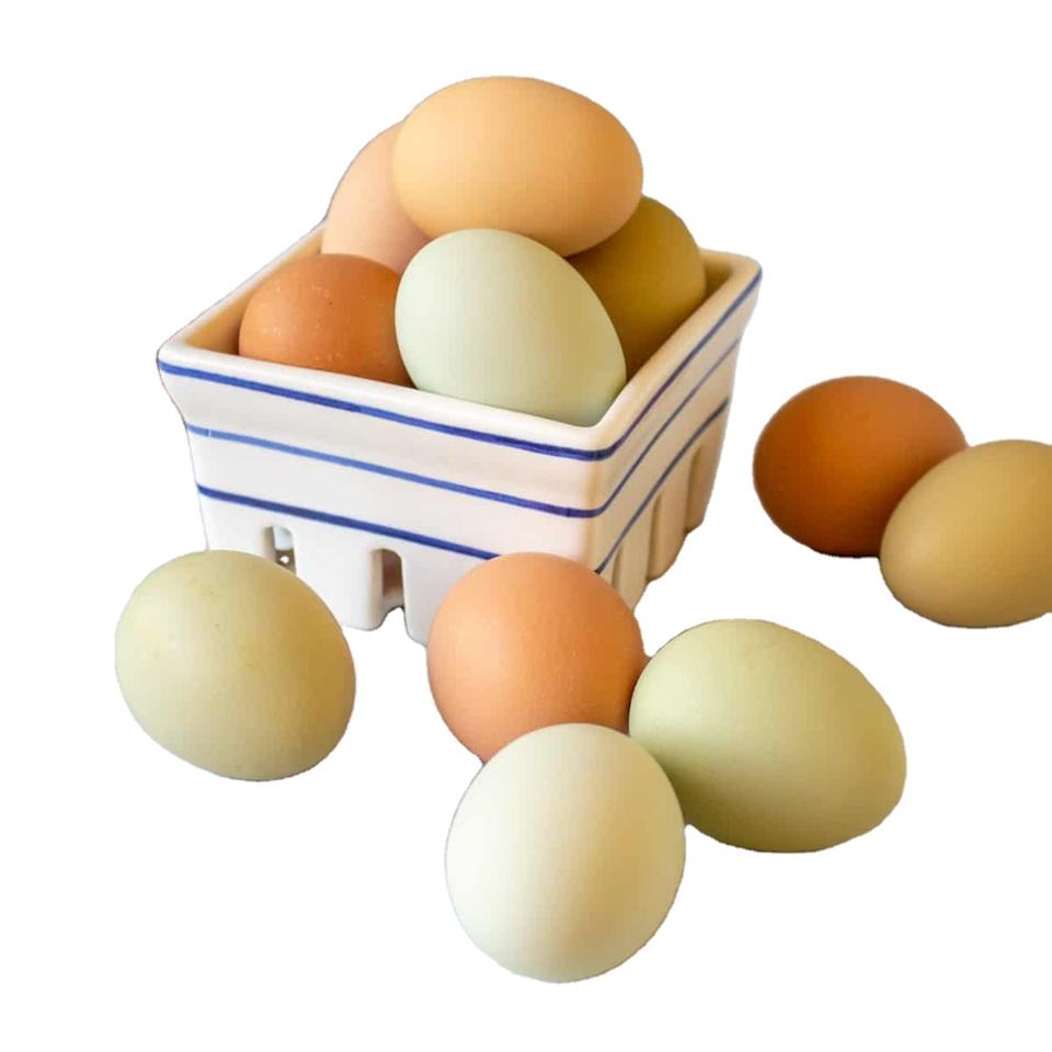 ไข่ไก่สีน้ำตาลสดและสีขาวขนาดเล็กถึงขนาดใหญ่