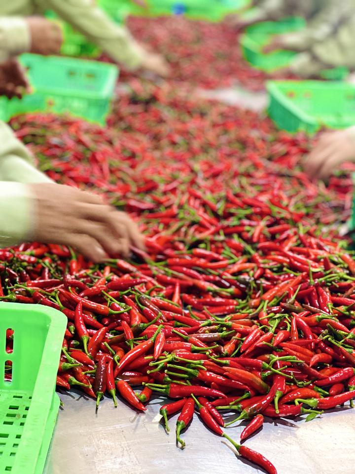 พริกดิบสดจากเวียดนาม พริกตาไก่ พริกแดง เกรดส่งออก บรรจุ 30 กก./แพ็ค สำหรับผู้ผลิตซอส ราคาขายส่ง