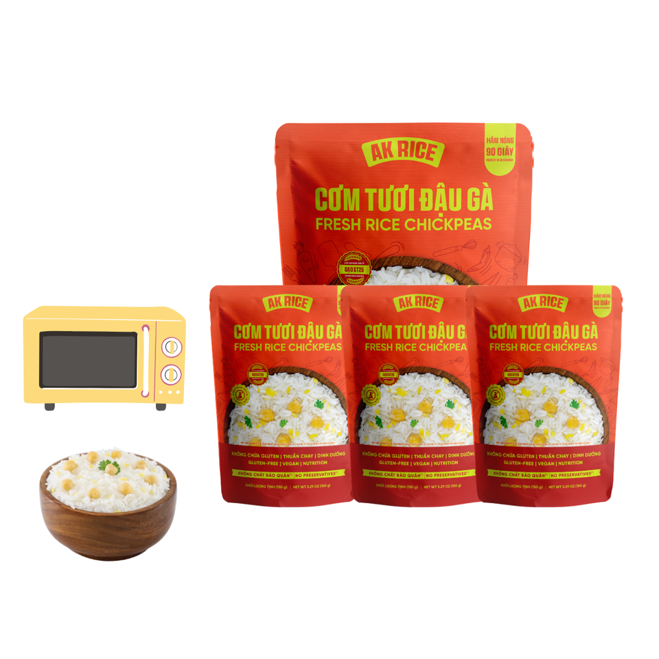 ข้าวสดถั่วชิกพีข้าวสารสำเร็จรูปที่นำเข้าไมโครเวฟได้ข้าวพร้อมปรุงคุณภาพสูงสำหรับการเตรียมอาหารอย่างรวดเร็วจากโรงงานเวียดนาม