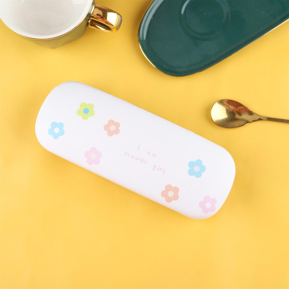 กล่องใส่แว่นตาเด็กผู้หญิงสไตล์สดใสกล่องใส่แว่นตาแบบพับได้ป้องกันความเครียดลายการ์ตูนน่ารักแบบพกพากล่องใส่แว่นตาทรงสี่เหลี่ยมผืนผ้า