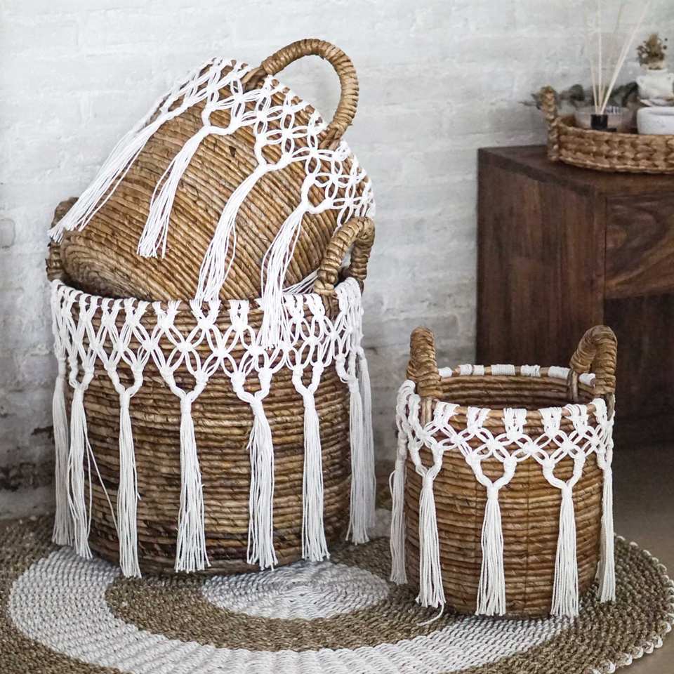ตะกร้าสานทำด้วยมือสำหรับตกแต่งบ้านตะกร้าสานจากหญ้าทะเลทำด้วยมือ