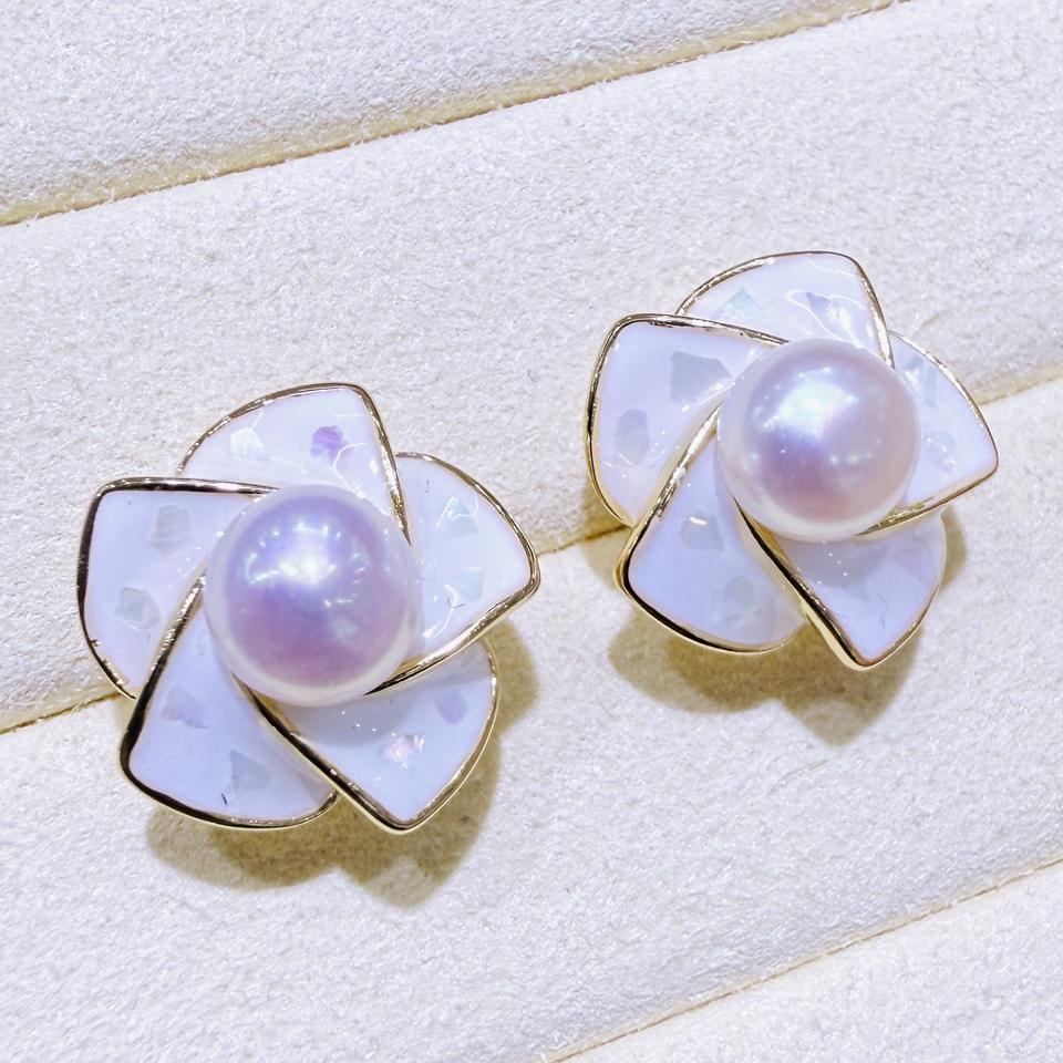 ต่างหูมุกน้ำจืดรูปทรงฮาร์เบอร์ ดีไซน์หวานละมุน ประดับเปลือกดอกคามิลเลีย ดีไซน์แบบห้อยระย้า เสียงกระดิ่งสุดเก๋ สไตล์สดใส หวานละมุน