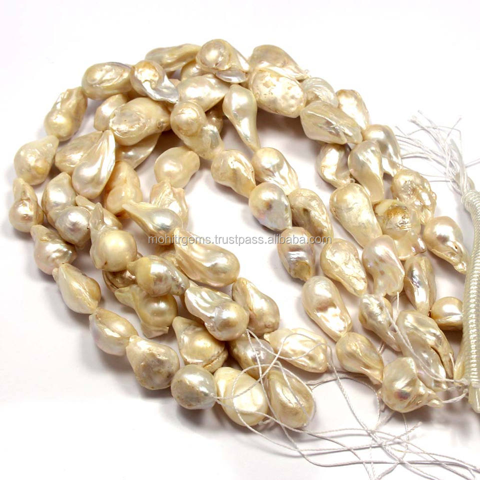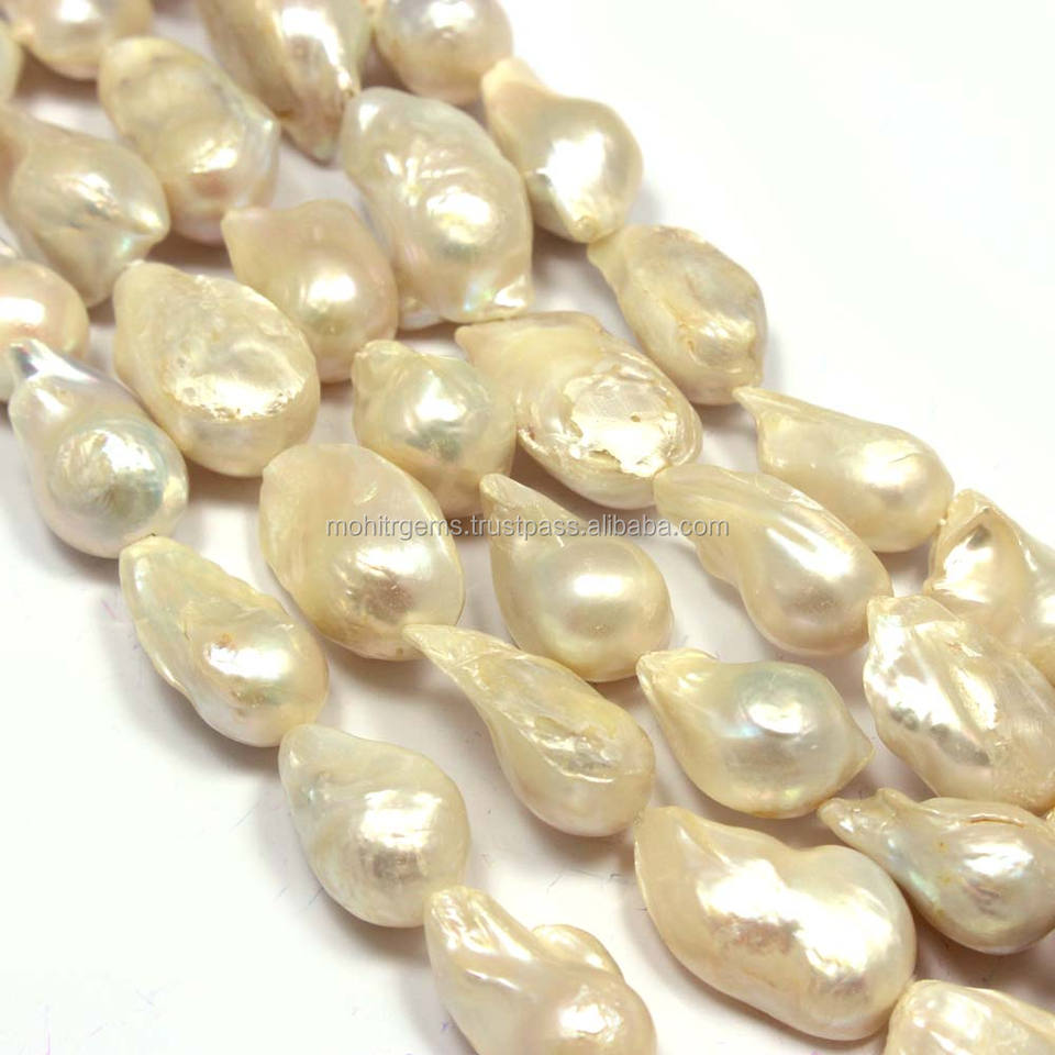 ไข่มุกน้ำจืดทรงบาร็อคสีขาว ร้อยเป็นสาย รูปทรงไม่สม่ำเสมอ อัญมณีแร่ธรรมชาติ ขนาด 10-25 มม.