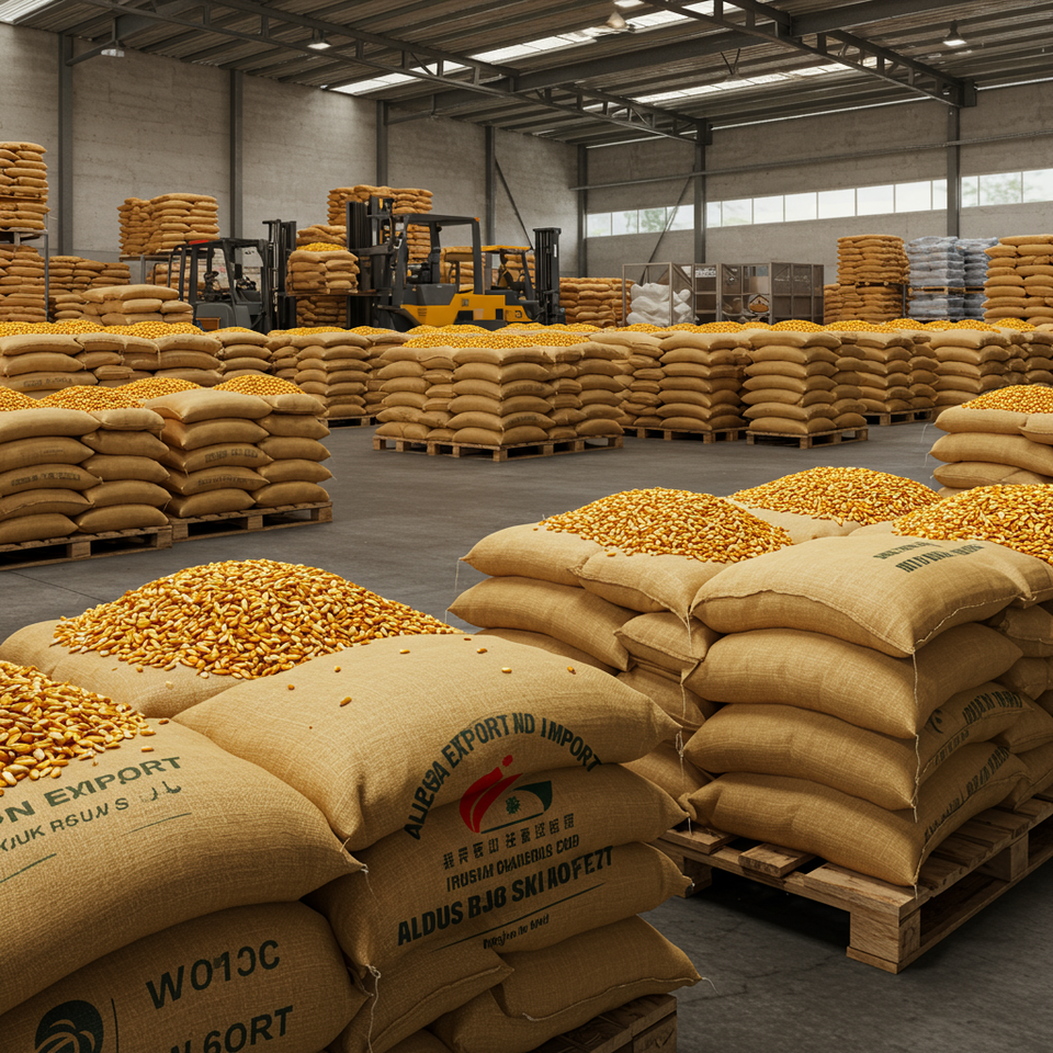 กำลังดำเนินการ:เมล็ดข้าวโพดสีเหลืองดิบ + แห้ง
