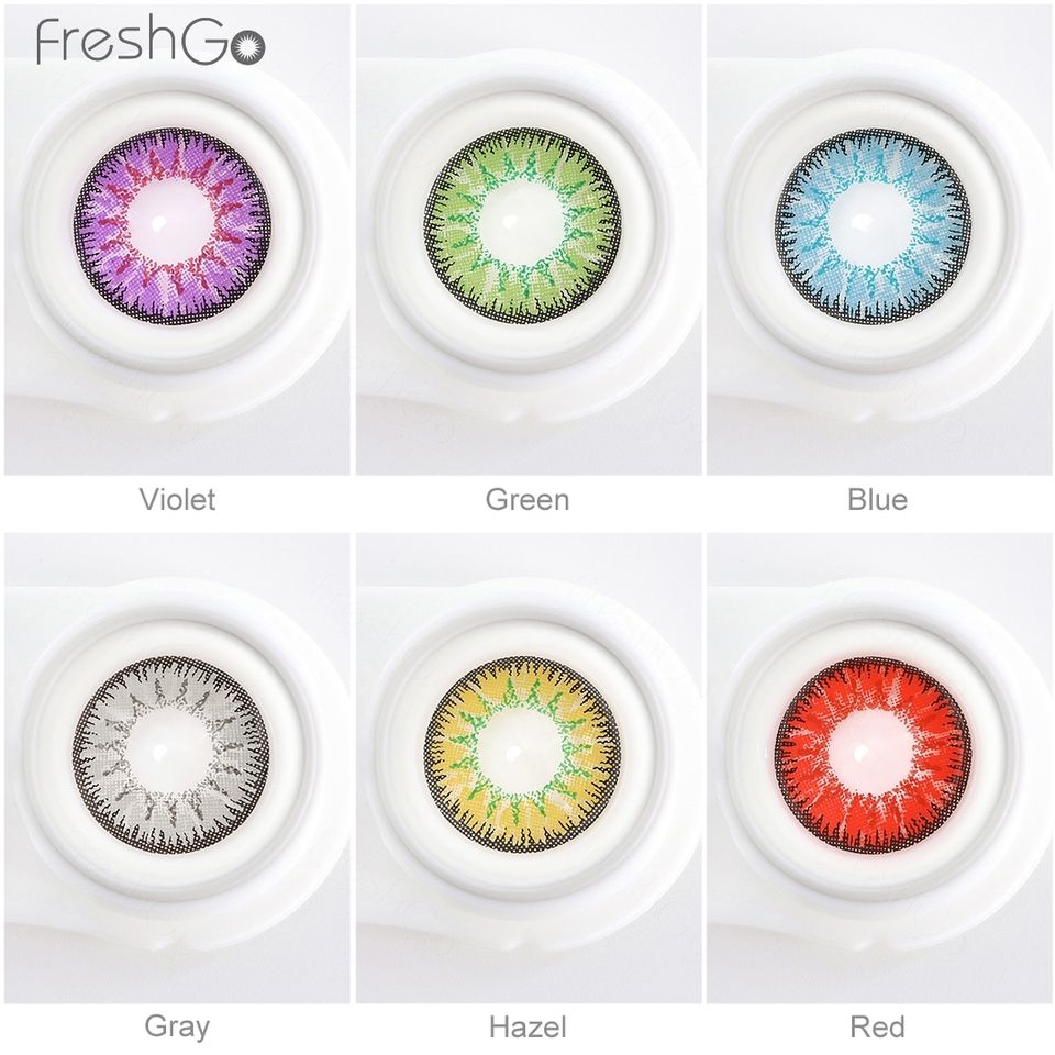 ม่วง, เขียว, ฟ้า, เทา, เฮเซล, แดง, น้ำตาลสีเลนส์