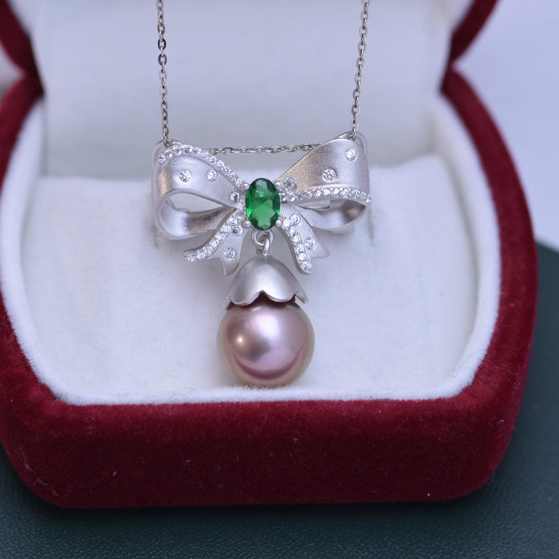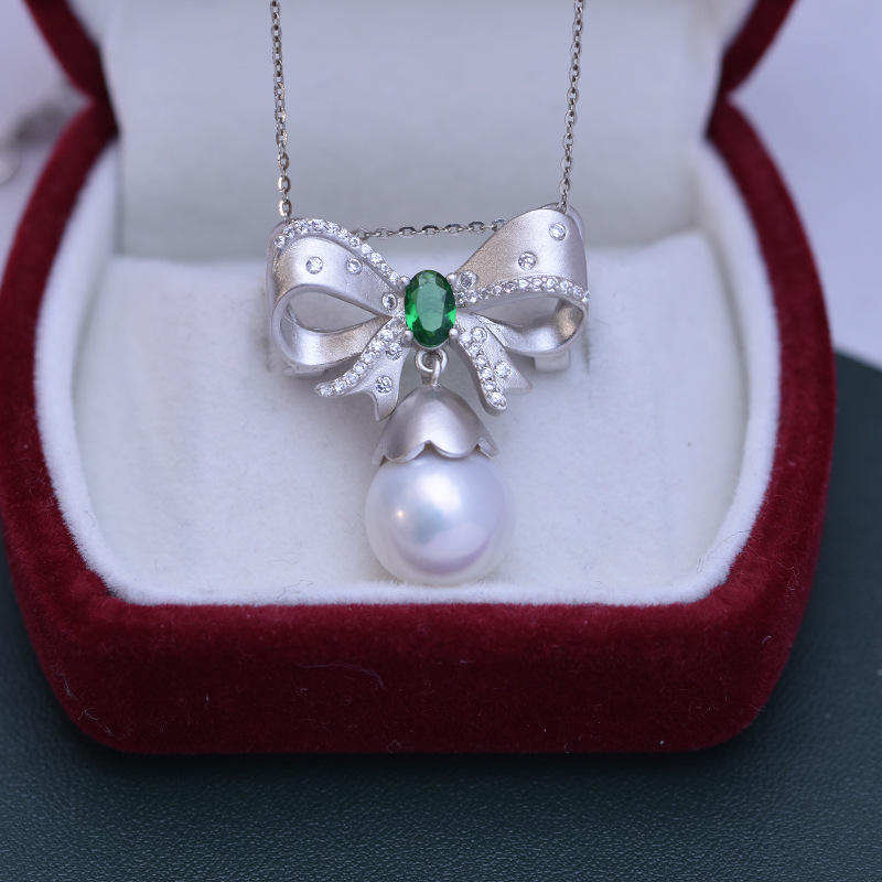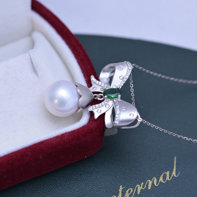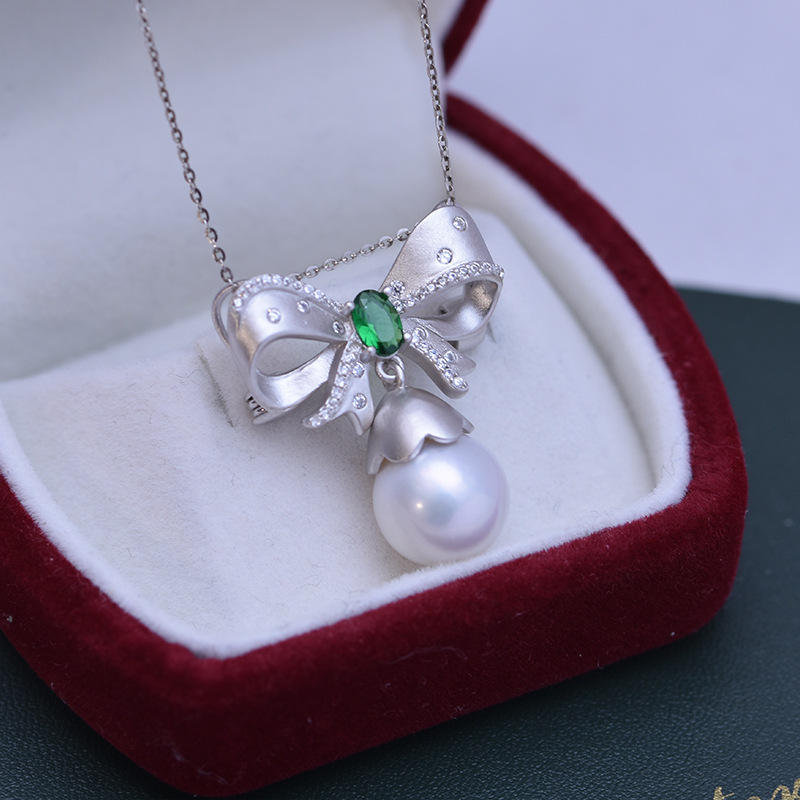 สร้อยคอเงินแท้ S925 ประดับมุกน้ำจืดทรงกลมสีขาว ขนาด 11-12 มม. พร้อมจี้มุกมีตำหนิเล็กน้อย แต่แสงสว่างสวยงาม ประดับด้วยเพชรซิรคอน สำหรับผู้หญิง