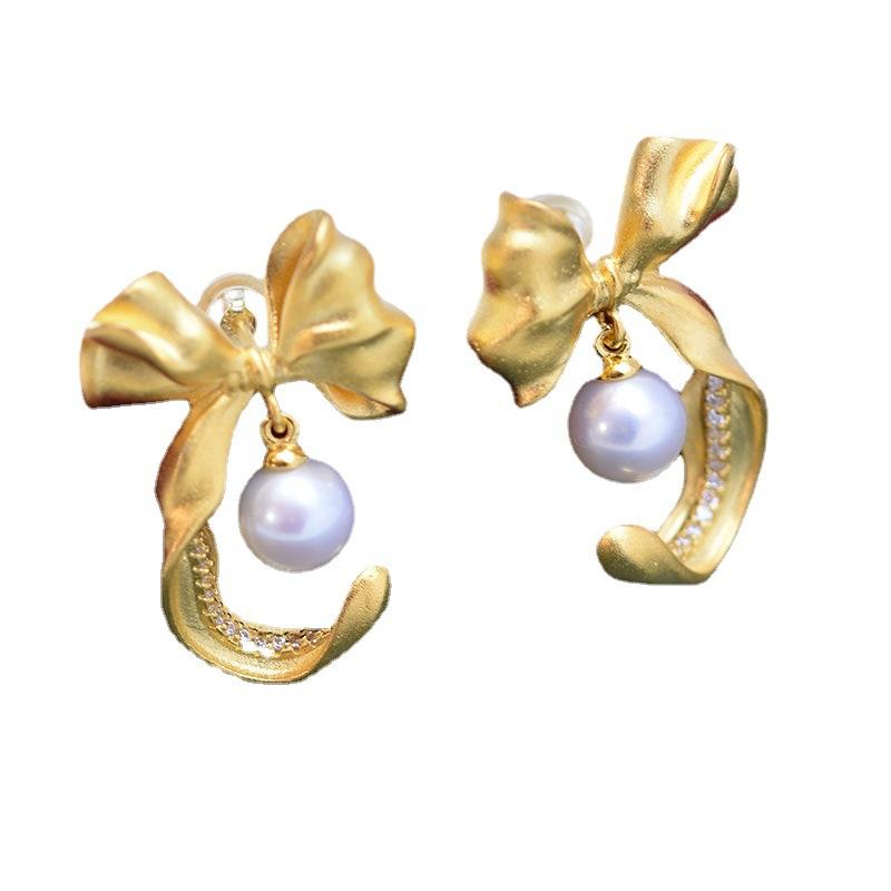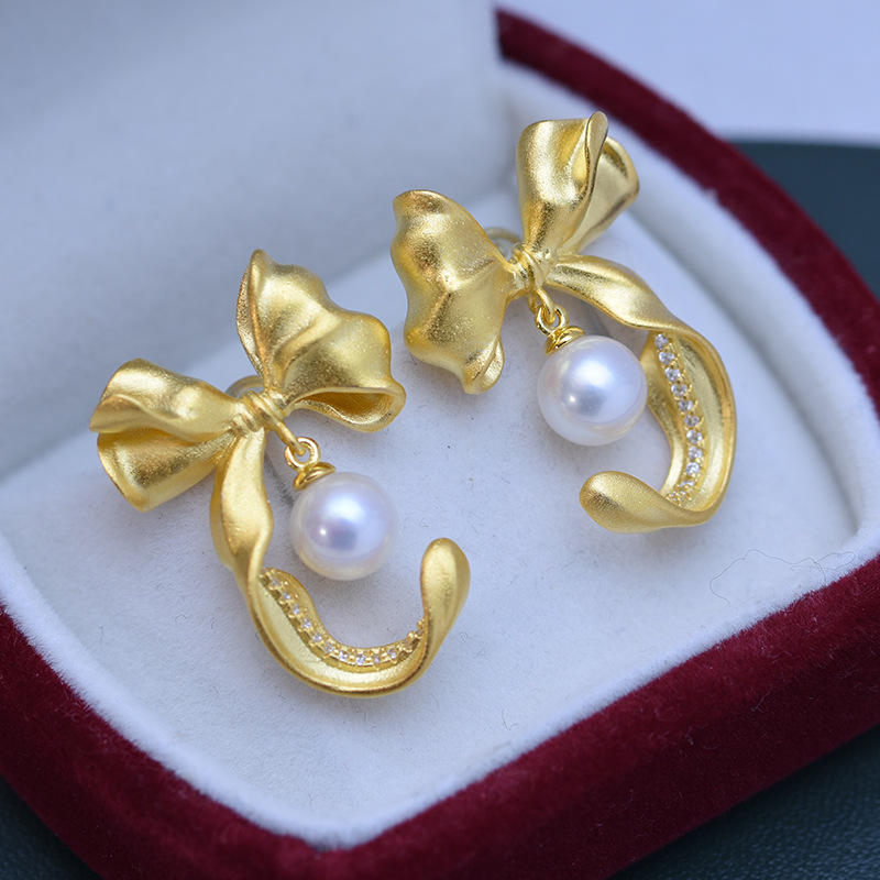 ต่างหูมุกน้ำจืดสีขาว 6-8 มม. แสงสว่างสวยงาม ดีไซน์เรียบง่าย ตัวเรือนเงินแท้ S925 สำหรับผู้หญิง