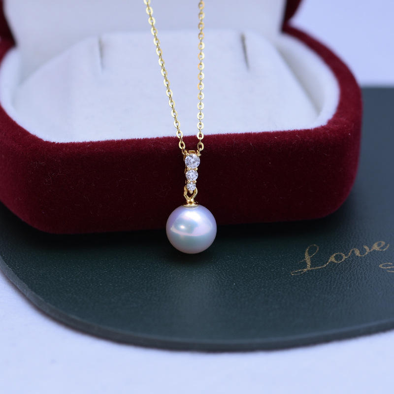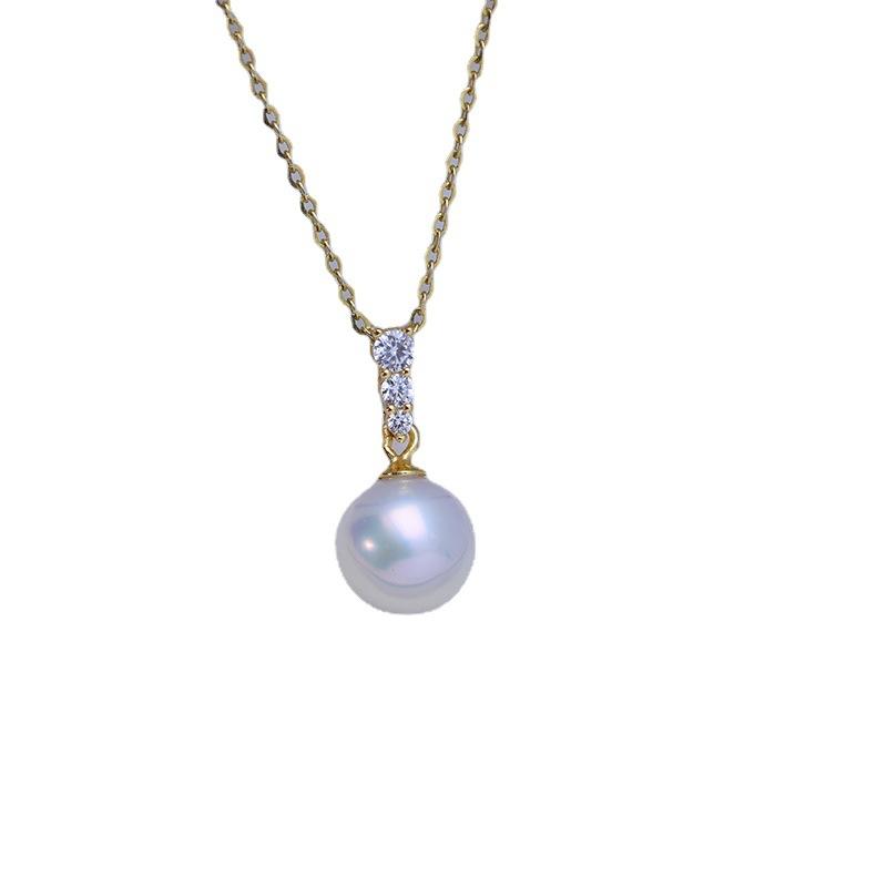 จี้มุกน้ำจืดทรงกลมสีขาว ขนาด 9-10 มม. แสงสว่างสวยงาม แทบไร้ตำหนิ พร้อมสร้อยคอเงินแท้ S925 ลายใบไม้ด้าน สำหรับผู้หญิง