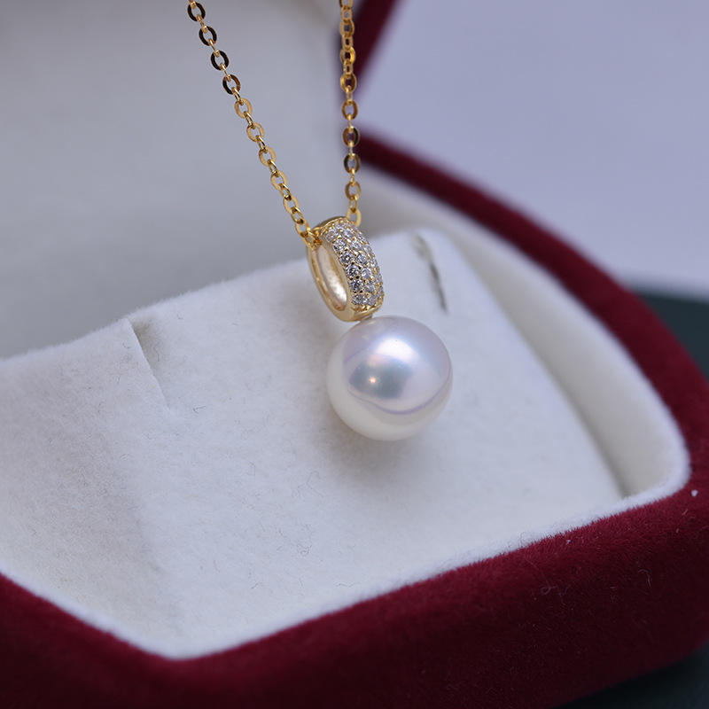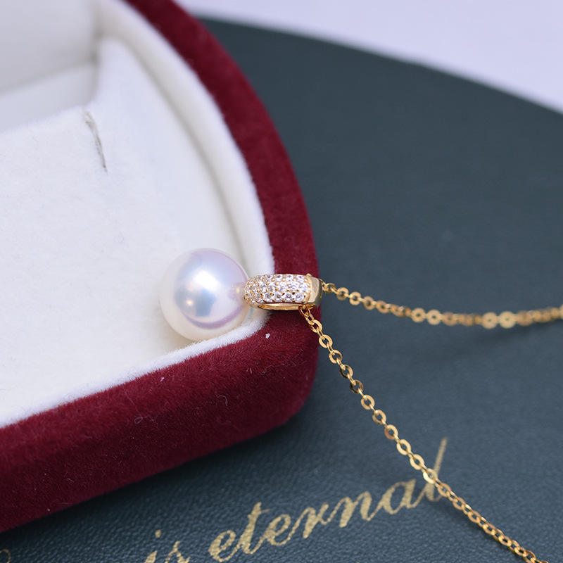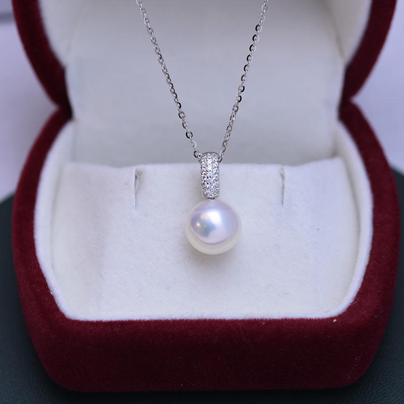 สร้อยคอจี้เงินแท้ S925 ประดับมุกน้ำจืดสีขาว ขนาด 9-10 มม. สำหรับผู้หญิง แสงสว่างสวยงาม มีตำหนิเล็กน้อย พร้อมชุดเต็มประดับด้วยลูกปัดเพทาย