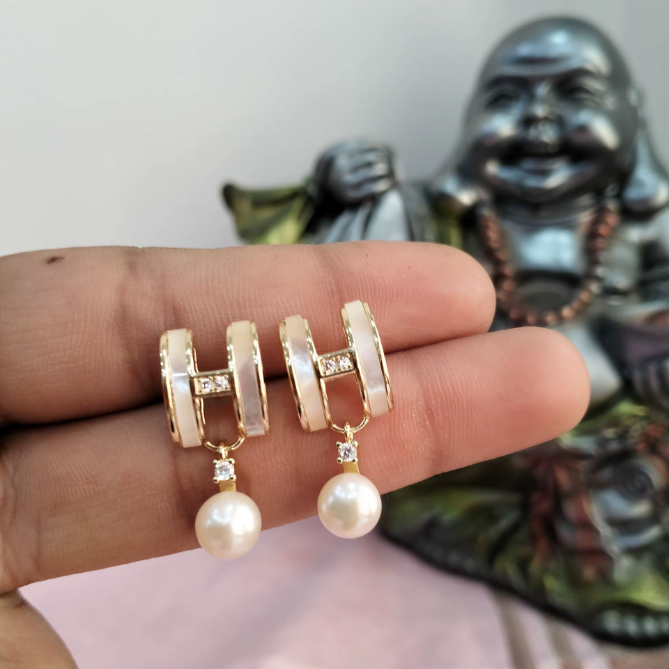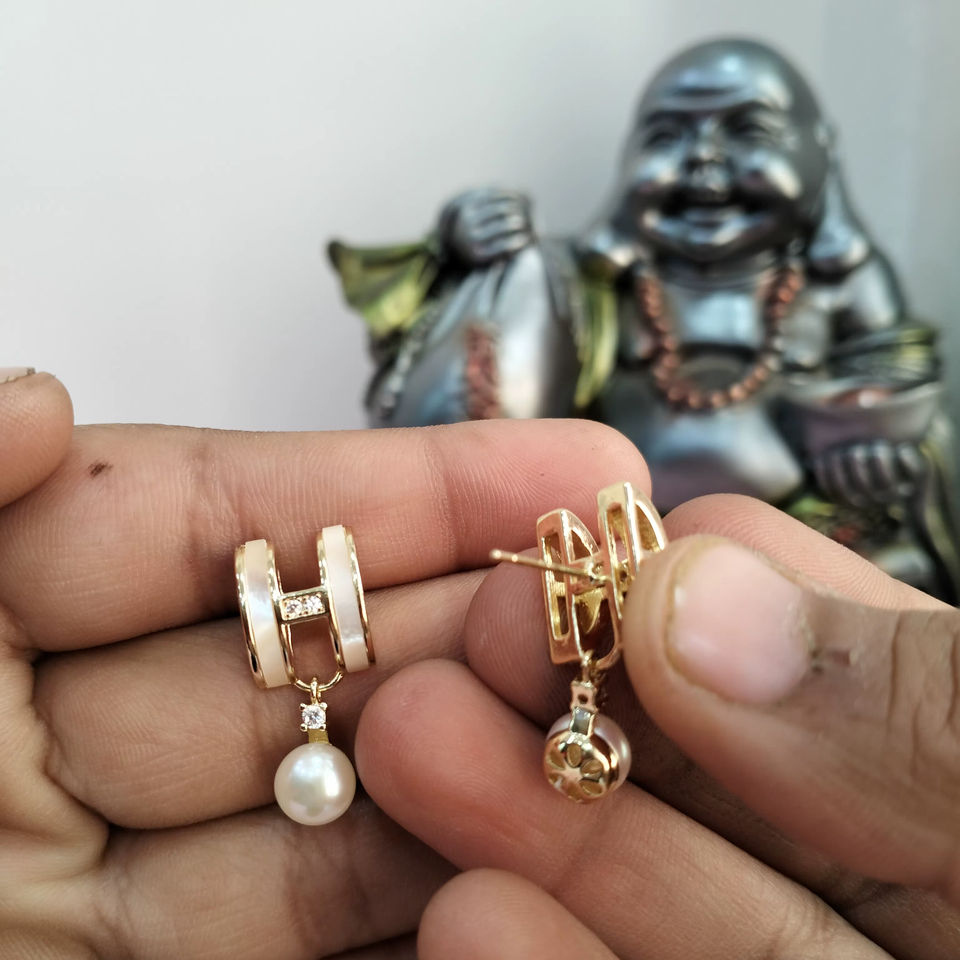 ต่างหูเม็ดเดี่ยวไข่มุกกระดุมน้ำจืดเครื่องประดับทองเรขาคณิตผู้ผลิตขายส่งจำนวนมาก