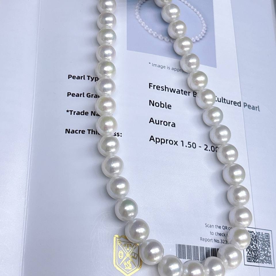 Freshwater Edison Purple Aurora Flawless Pearl Necklace 9-11mm Round Beads with S925 Silver Buckle Premium Mom Chain
