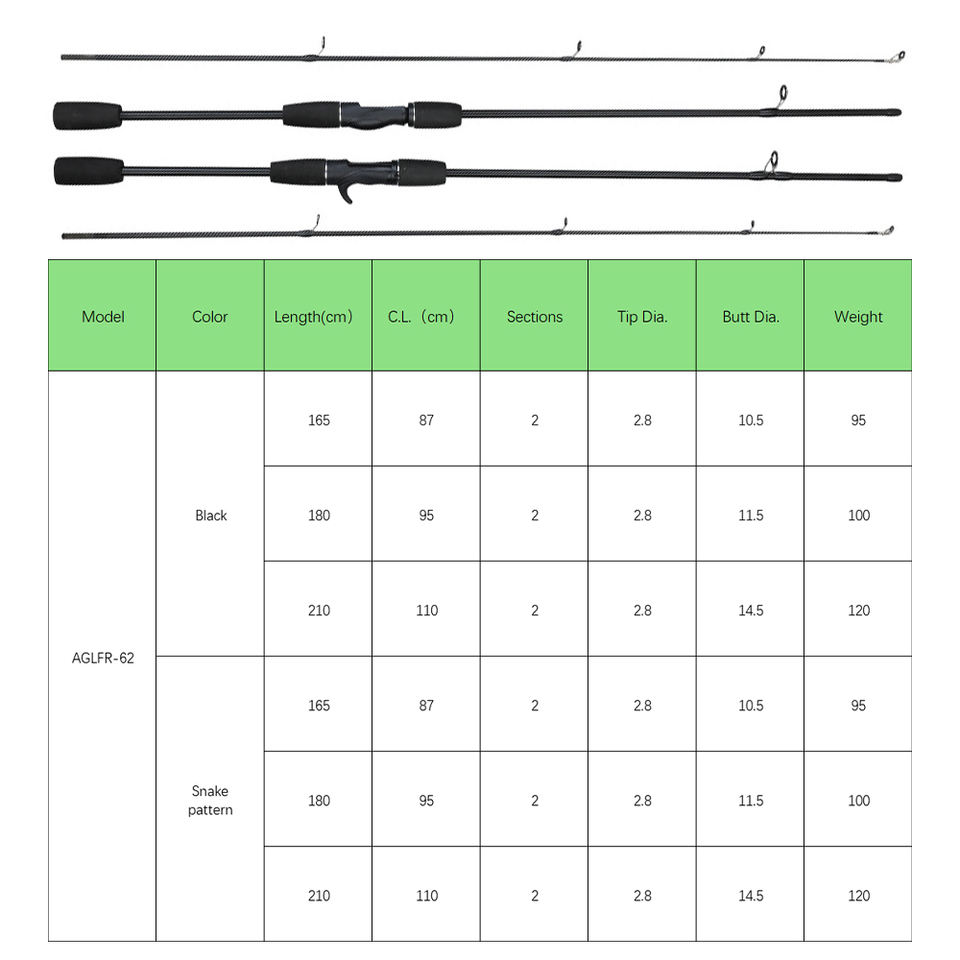 คันเบ็ดตกปลาในน้ำจืด คันเบ็ดตกปลา 1.65ม. 1.8ม. 2.1ม. คันเบ็ดสปินนิ่ง คาร์บอนไฟเบอร์ แอคชั่น M คันเบ็ดสปินนิ่งแบบ Baitcasting
