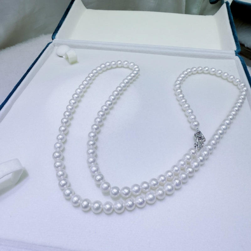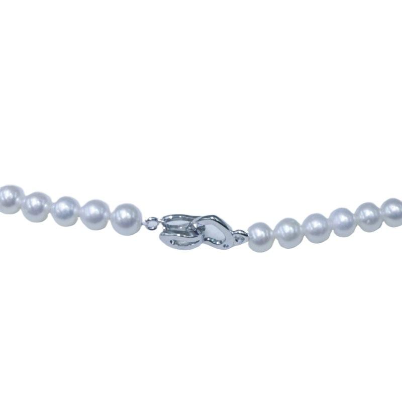สร้อยคอมุกน้ำจืด 5-6 มม. ทรงกลม แทบไร้ตำหนิ สร้อยคอแบบเสื้อสเวตเตอร์ ประดับด้วยจี้รูปหัวใจสีทอง ความยาว 60 ซม.