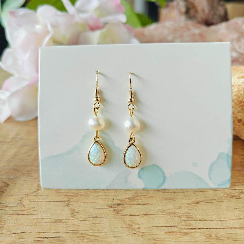 ชื่อผลิตภัณฑ์:ต่างหูห้อยไข่มุกน้ำจืดและหัวใจมูนสโตน