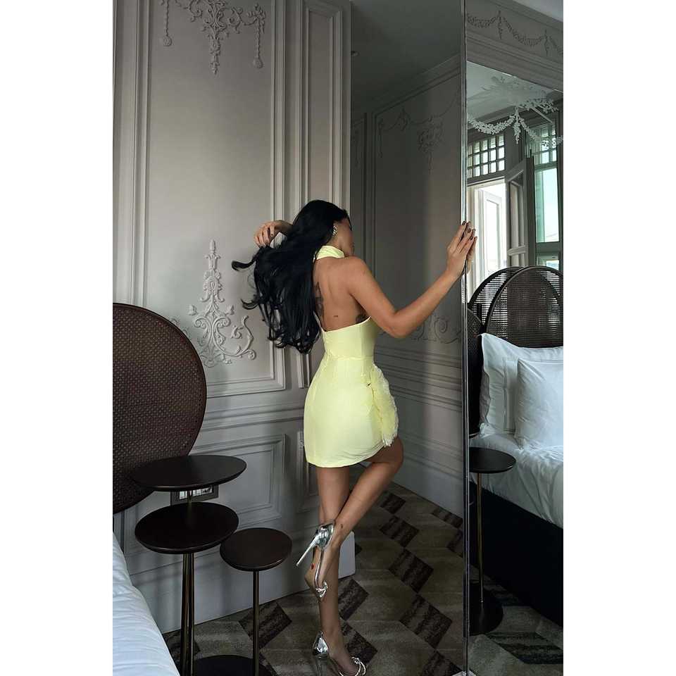 เดรสสั้นสีเหลือง Freyya ดีไซน์หรูหรา แต่งขอบด้วยลายกุหลาบ คอเหลี่ยมทันสมัย ไซส์พลัส ฟรีไซส์ ใส่ได้ทุกวัน เหมาะสำหรับงานพรอมสำหรับผู้หญิง