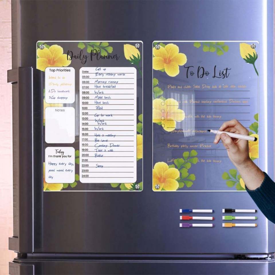 สติกเกอร์ติดตู้เย็น ปฏิทินแม่เหล็ก ใช้ซ้ำได้ วางแผนรายสัปดาห์ A3/A4 โปร่งใส ลบได้ ละลายน้ำได้ อะคริลิค ตารางเวลาที่บ้าน