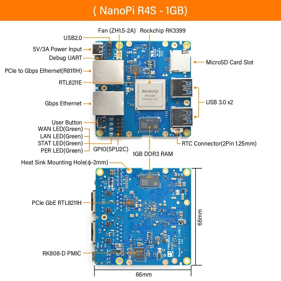 FriendlyElec Nanopi R4S มินิเราเตอร์พกพาสำหรับการเดินทาง รองรับ OpenWRT พร้อมพอร์ตอีเธอร์เน็ตแบบ Dual-Gbps หน่วยความจำ 4GB LPDDR4 ใช้ชิปเซ็ต RK3399 สำหรับงาน IoT