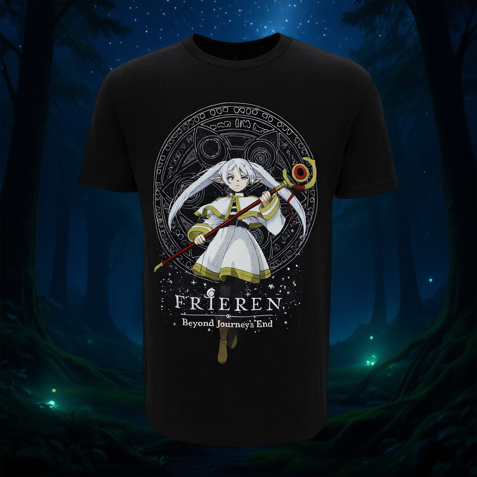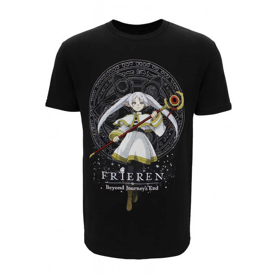 เสื้อยืดผู้ชายฟรีเรนแขนสั้นผ้าฝ้ายเจอร์ซีย์พิมพ์ลายตัวอักษรคอกลมทรงปกติสไตล์ลำลอง