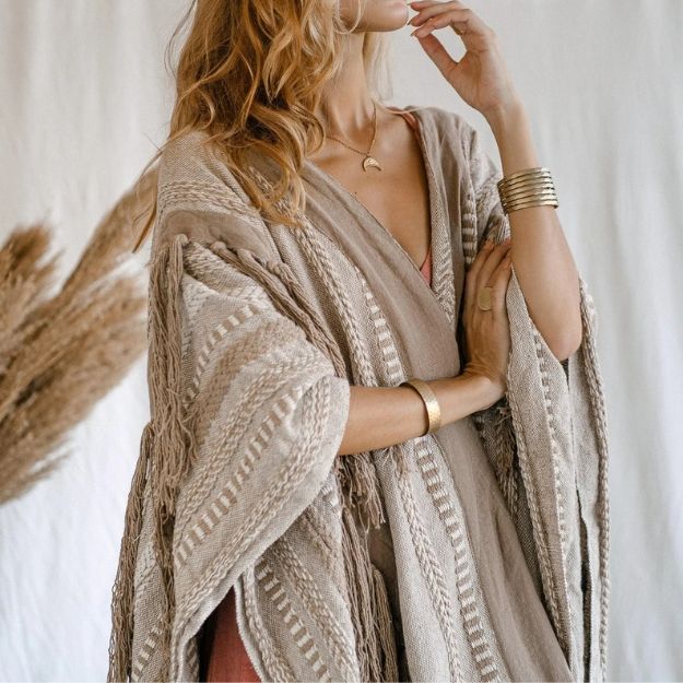เสื้อคลุมพอนโชสำหรับพิธีต่างๆ สไตล์โบโฮ สำหรับงานเทศกาล คิโมโนผืนใหญ่ ผ้าคลุมไหล่แบบโดดเด่น เสื้อคลุมสไตล์โบฮีเมียนสำหรับผู้หญิง ใส่ได้ทุกวัน