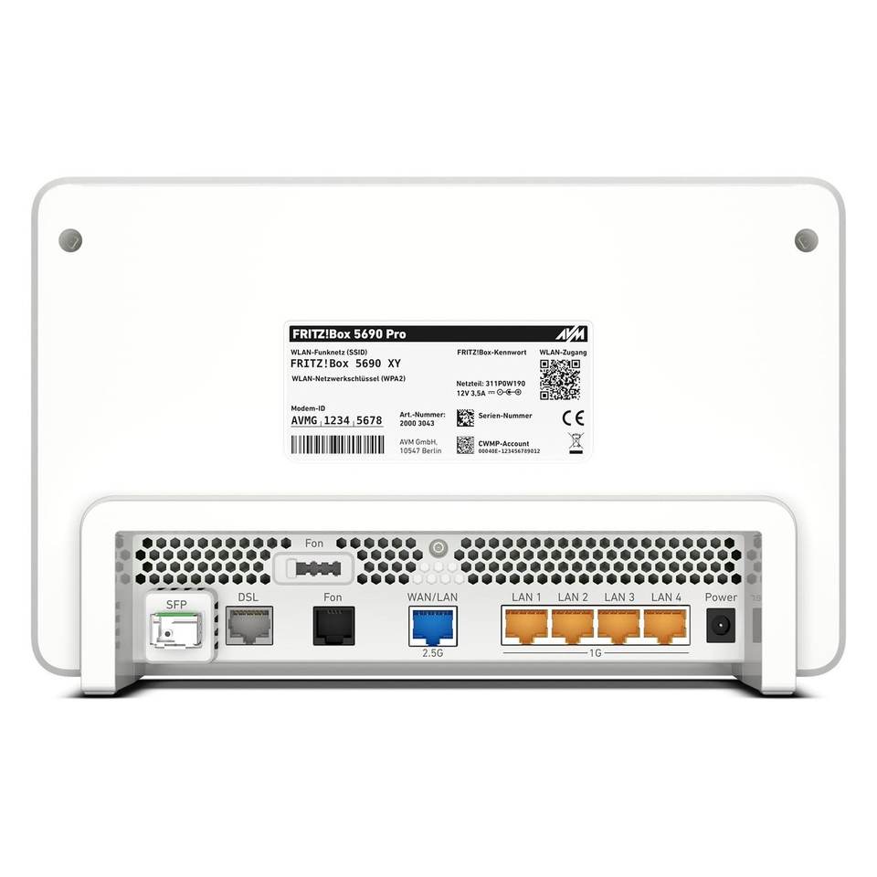 ฟริตซ์! BOX 5690 Pro โมเด็มเราเตอร์แบบสามย่านความถี่ สำหรับใช้งานที่บ้าน VoIP 802.11ac สีขาวและสีแดง รุ่น 20003043 0933062